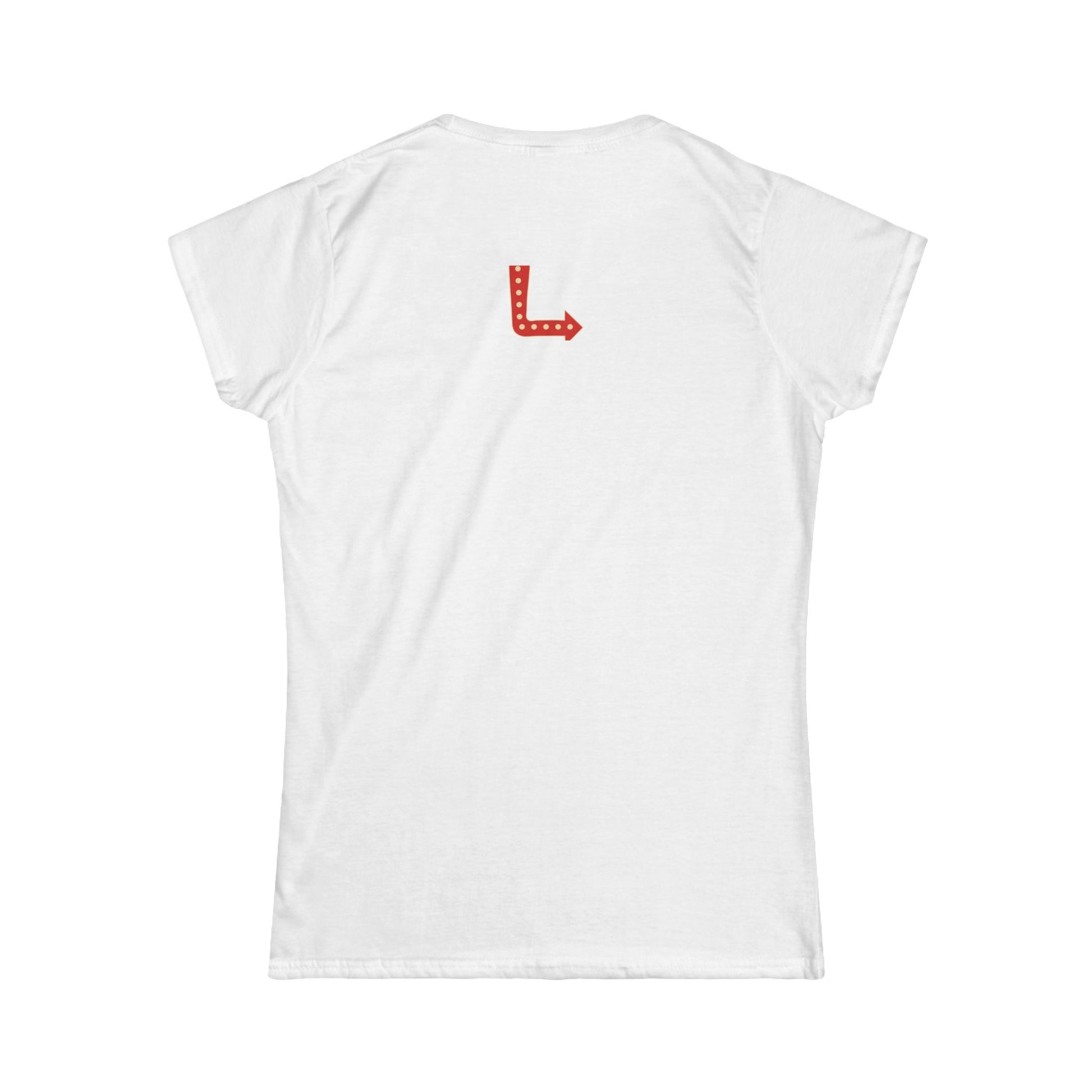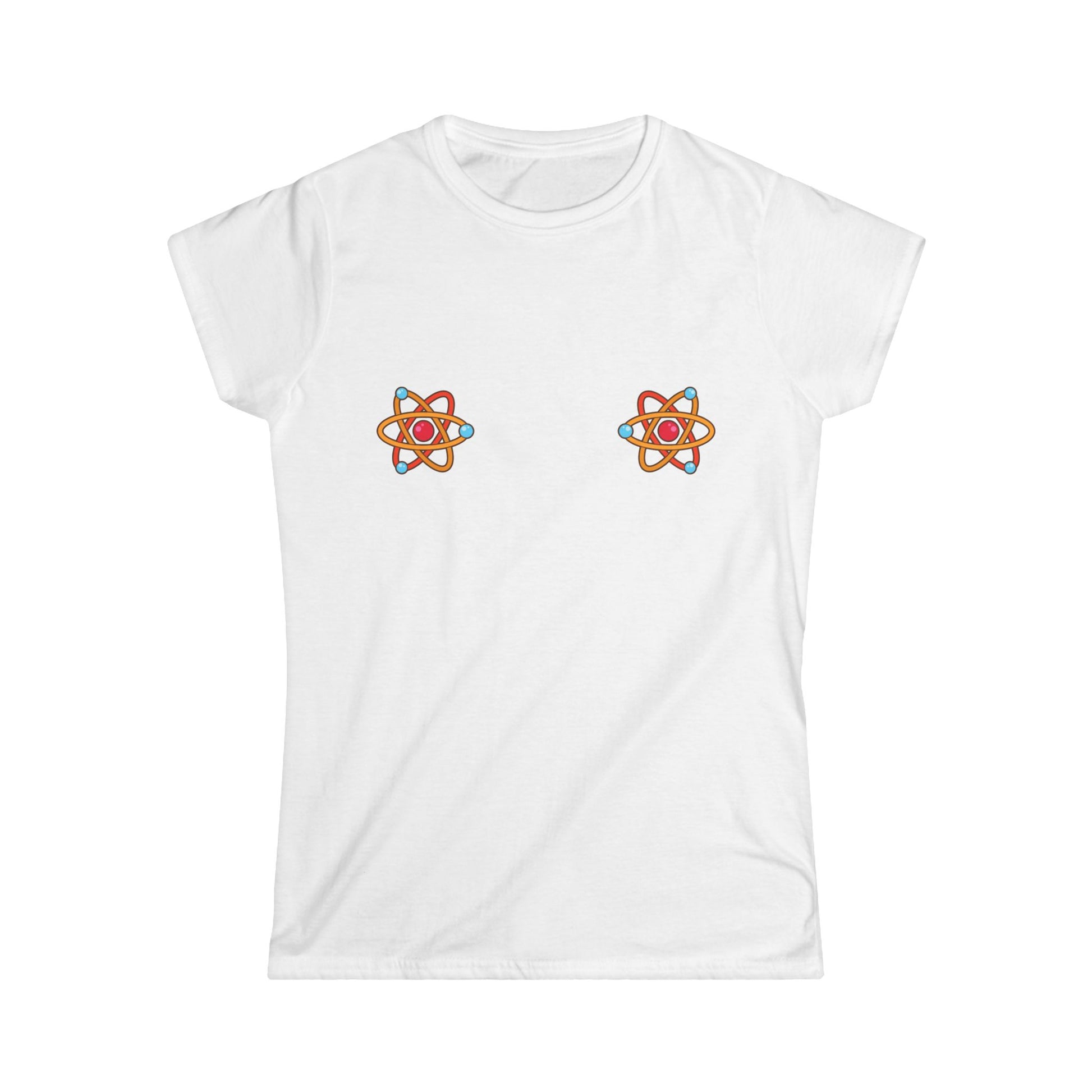 Atomic girls design on a softstyle tee for women. Gives off a retro, edgy vibe perfect for casual wear. Ideal for women who love vintage and unique style. Relevant for everyday wear, casual outings, and music festivals.